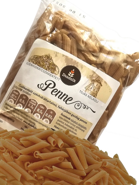 A penne a DI-AD-ALK Kft. fejlesztésében Diadalk márkanév alatt került forgalomba. Egy speciális lisztkeveréket használunk hozzá, ami csökkentett szénhidráttartalommal bír. Tésztáink kiválóan alkalmasak a hagyományos tészta pótlására, kiváltására.